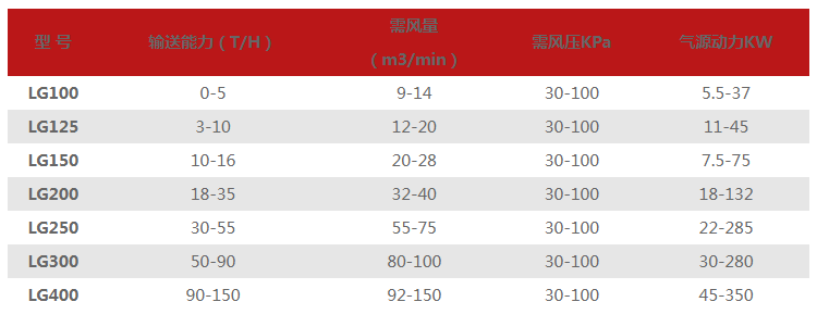 气力输送料封泵采用高密度的低压栓流式输送,消耗较少的压缩空气可以输送较多的物料,输送灰比最高可达80-100。以100m趴离的粉煤从气力输送为例,输送灰气比可达80kg/kg。